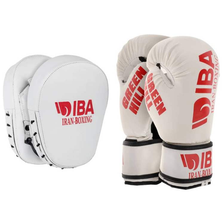 ست دستکش و میت آیبا از بهترین ست های بوکس است که برای انواع ورزشهای رزمی مورد استفاده قرار میگیرد. این محصول از چرم مصنوعی با کیفیت تهیه شده به همین دلیل ضربات وارد شده را به خوبی جذب کرده و از ورزشکار حمایت میکند.
